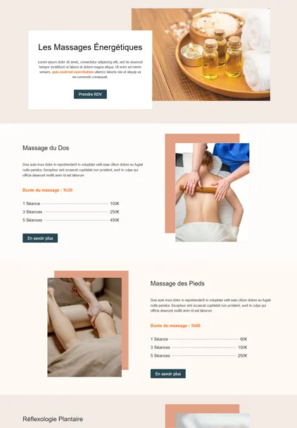 Vous exercez un métier du bien-être (massage, salon de relaxation, spa, thérapie holistique, médecine alternative…) ? Je crée pour vous un site web élégant, optimisé SEO et conçu pour attirer vos clients locaux.